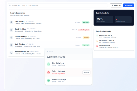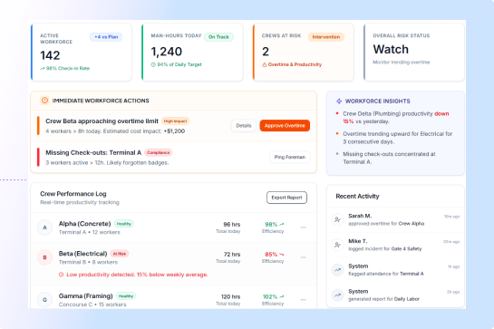 - Track daily worker activity and crew productivity from site reports
