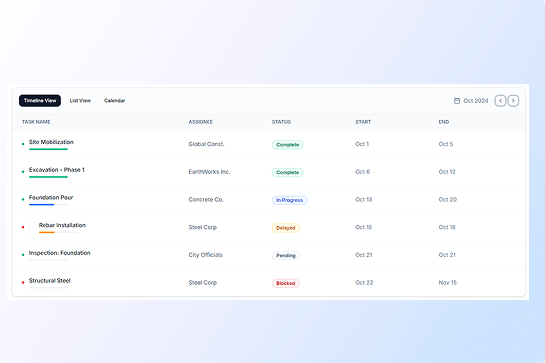 - Flag delays, stalled work, and productivity shortfalls
